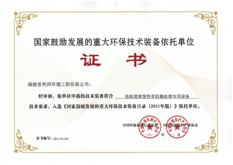 福建省科技型企業(yè)、福建省創(chuàng)新性企業(yè)、福建省首批科技小巨人、福建省“專精特新”專業(yè)化企業(yè),擁有企業(yè)研發(fā)中心、福建省有機廢氣凈化設備工程技術(shù)研發(fā)中心;公司產(chǎn)品獲得科技部、環(huán)保部、商務部、國家質(zhì)量監(jiān)督總局頒發(fā)的“國家重點新產(chǎn)品”證書,“中低濃度揮發(fā)性有機物回收凈化裝備”被列入《國家鼓勵發(fā)展的重大環(huán)保技術(shù)裝備目錄(2017年版)》;公司核心發(fā)明專利分別獲得了中國專利獎優(yōu)秀獎、福建省專利獎二等獎等專利獎項,其中兩個核心技術(shù)分別獲得福建省技術(shù)發(fā)明獎二等獎、福建省科學技術(shù)進步獎二等獎;公司